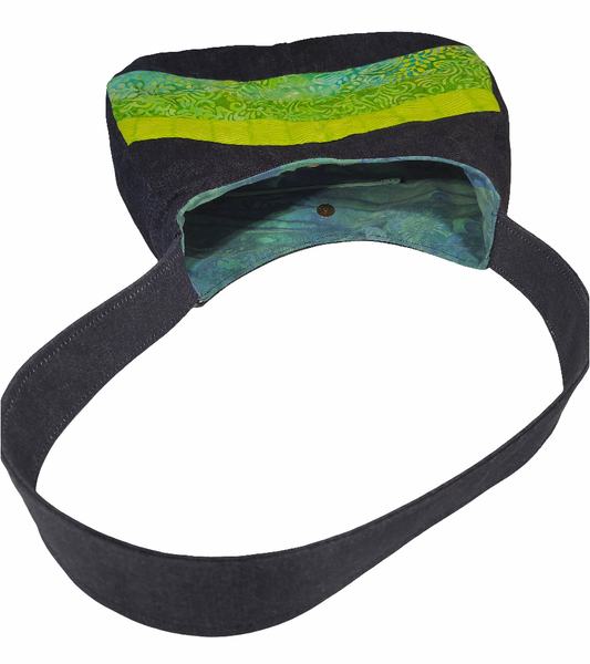 Dark-Wash Denim and Tropical Beach Green Batik Hobo Bag - Boho Denim Purse - Canadian Made - One of a Kind - Artisan Shoulder Bag