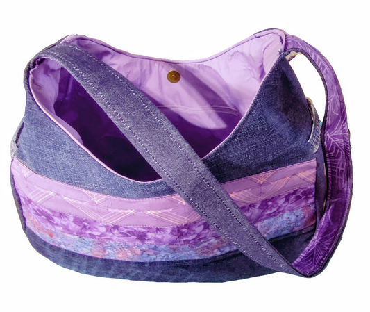 Denim and Purple Shoulder Bag - Boho Denim Purse - OOAK - Eco-Friendly Vegan - Canadian Made - Sustainable Fashion - Artisan Shoulder Bag