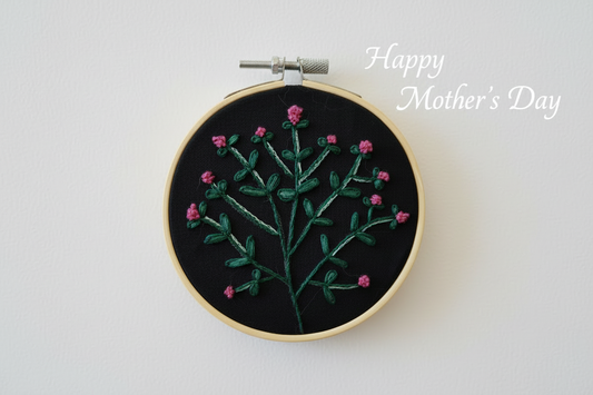 Hand Embroidered Spring Flowers in Magenta and Emerald