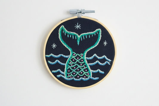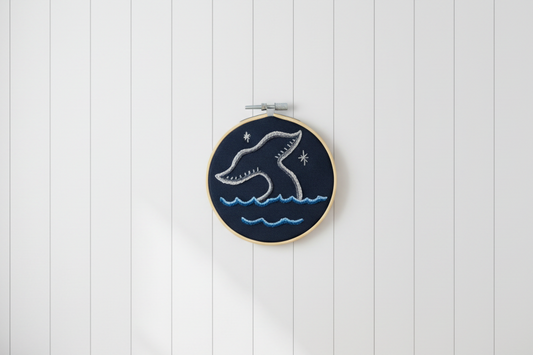Mama and Baby Whale Tail - Hand Embroidery Art