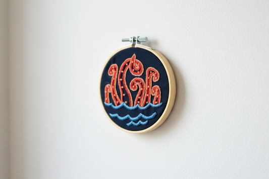 Orange Octopus Embroidery Hoop Art – Nautical Wall Decor – Coastal Ocean Embroidery – Small Beach House Decor – Cute Octopus Gift – Handmade Needle Art