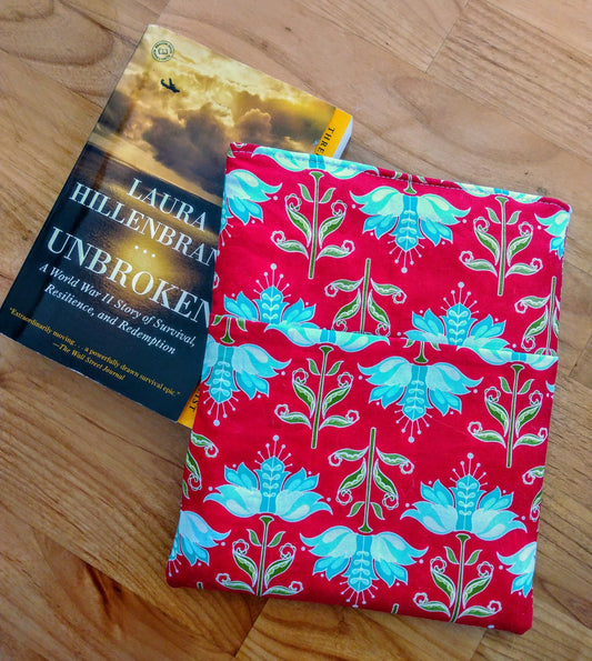 Red Floral Padded Book Sleeve with Pocket: Tablet, eReader, Kindle Case