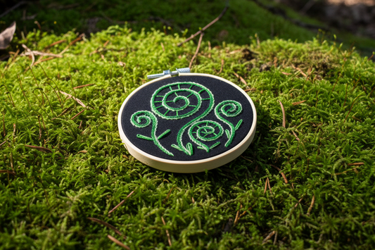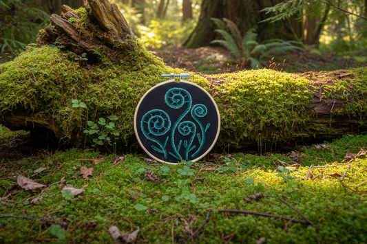 Hand Embroidered Fern Wall Art – 4” Hoop Botanical Decor – Green Fern on Dark Fabric – Minimalist Nature Embroidery – Handmade Gift