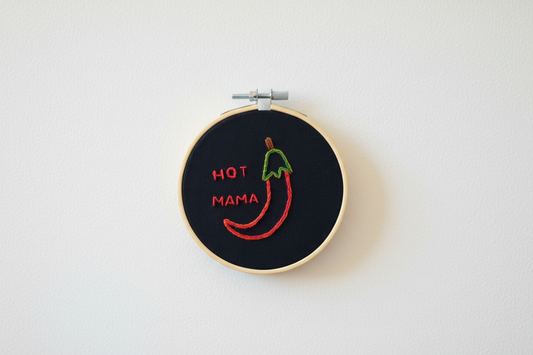 Hand Embroidered Chilli Pepper - Hot Mama - Kitchen Decor